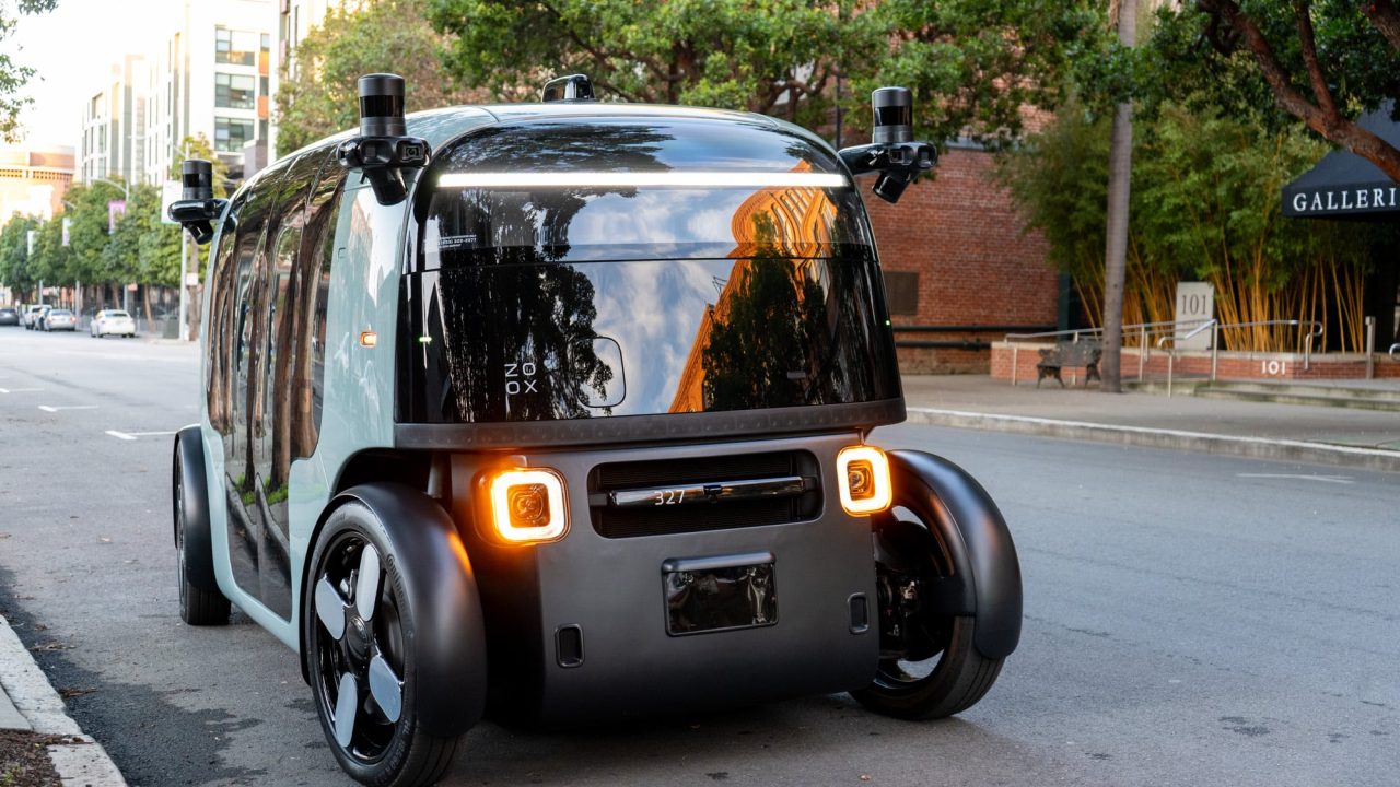 Los vehículos de Zoox no son como los autos tradicionales convertidos a autónomos. Son robots rodantes diseñados desde cero, sin volante ni pedales, con asientos que se enfrentan entre sí y puertas que se abren hacia ambos lados.
