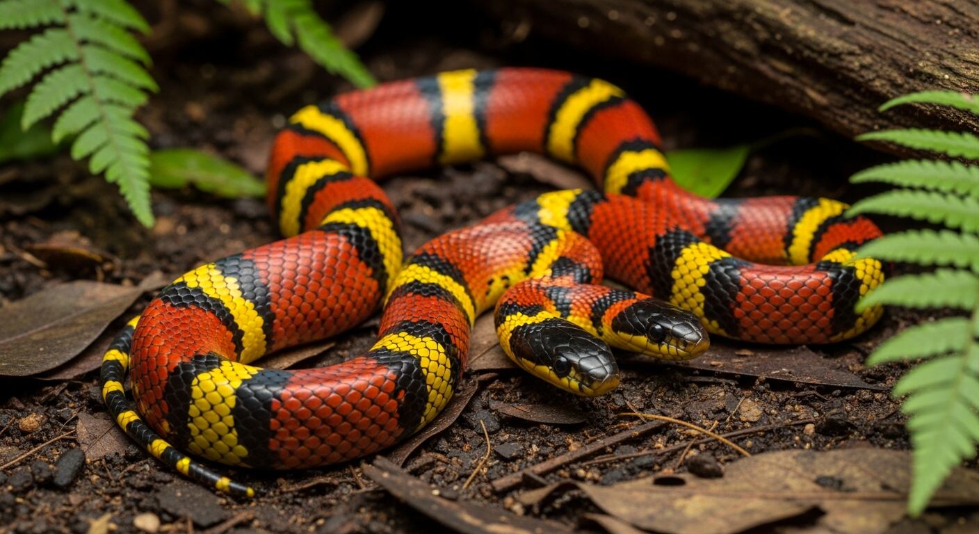 La serpiente coral oriental (Micrurus fulvius) es considerada una de las especies más letales que habita en territorio estadounidense. A diferencia de otras serpientes venenosas, su veneno neurotóxico puede causar parálisis respiratoria en cuestión de horas si no se recibe tratamiento médico inmediato.